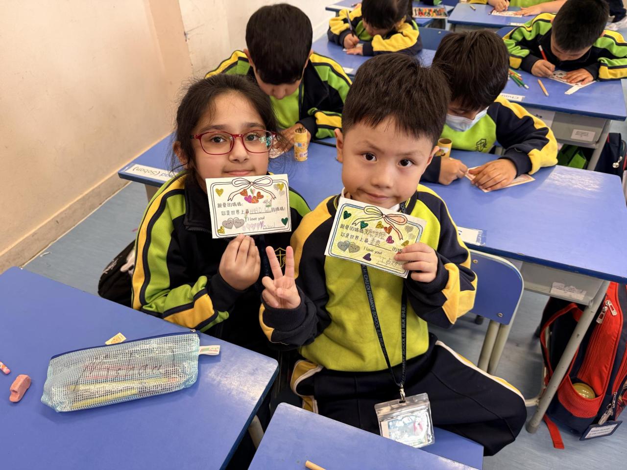 在「故事爸媽」多元智能課中,家長們化身故事中的角色,為孩子們講故事。活動後,學生更分享自己眼中的媽媽,再親手製作小卡片為辛勞的媽媽送上驚喜!