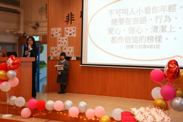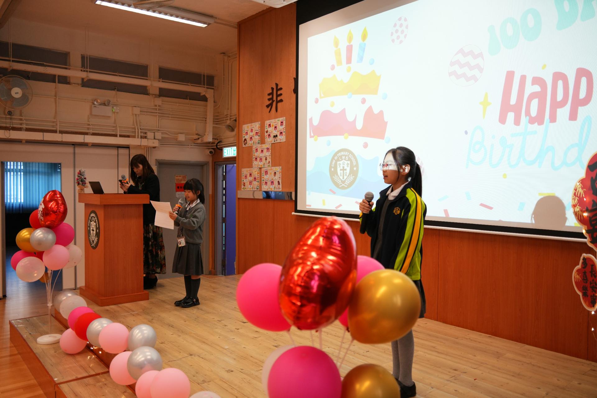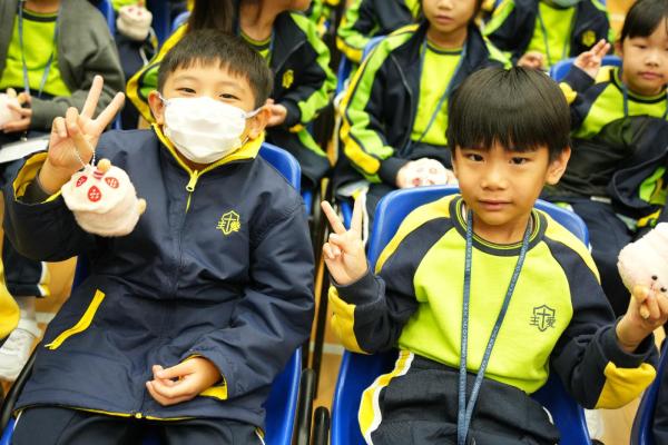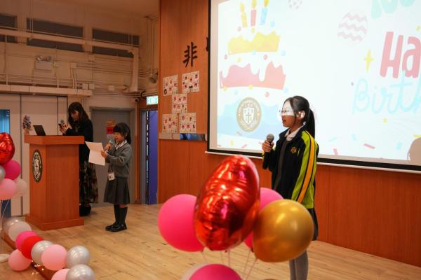 學校為一年級同學們辦了一場超熱鬧的小一百日宴🎉,慶祝他們加入校園三個多月的奇妙旅程🌟!首先,大螢幕播放他們在校的生活片段:上課情況✏️、歷奇活動🏃♂️、現場笑聲不斷👏!緊接著,全場為一年級同學高唱生日歌!並由六年級大哥哥、大姐姐為他們送上軟綿綿的蛋糕公仔🎂,每位同學接過禮物後,臉上充滿甜蜜笑容😊!這場派對不只甜,還充滿了溫暖回憶!✨