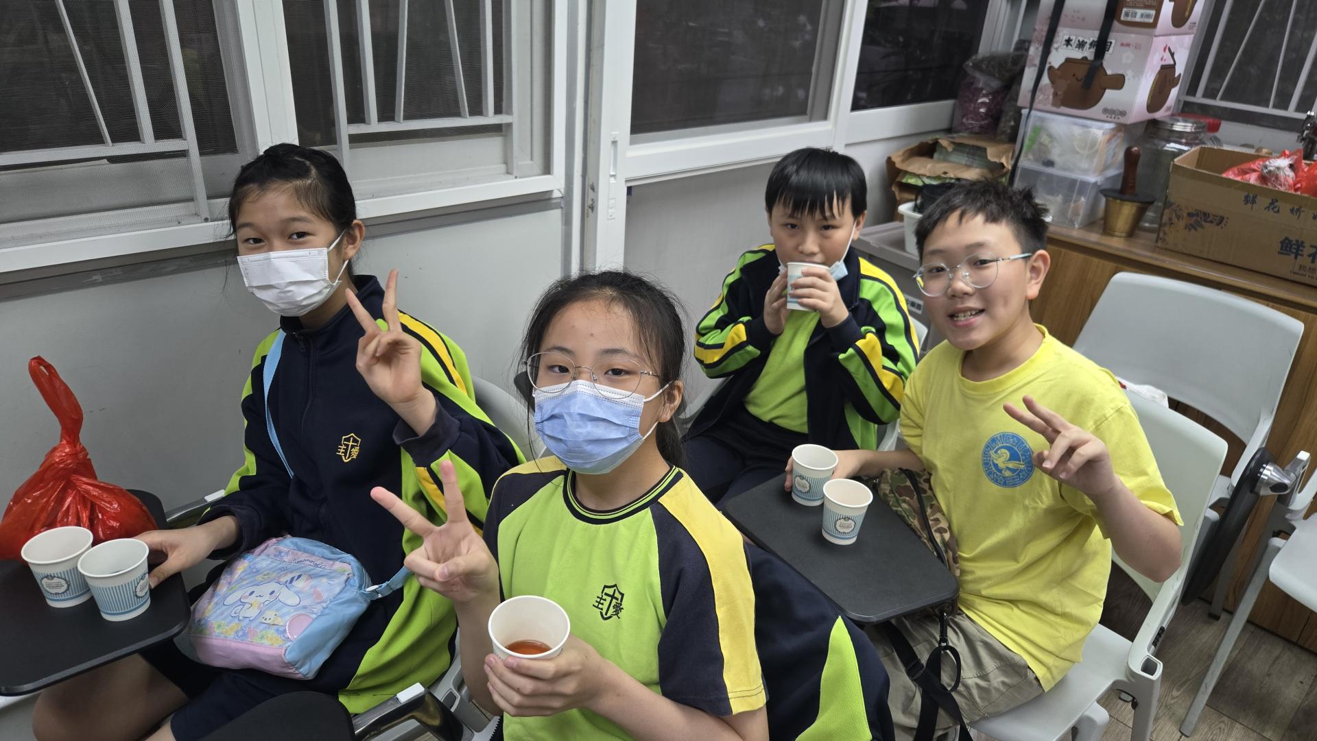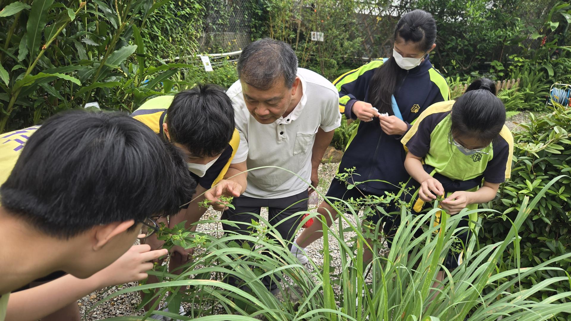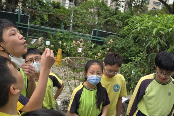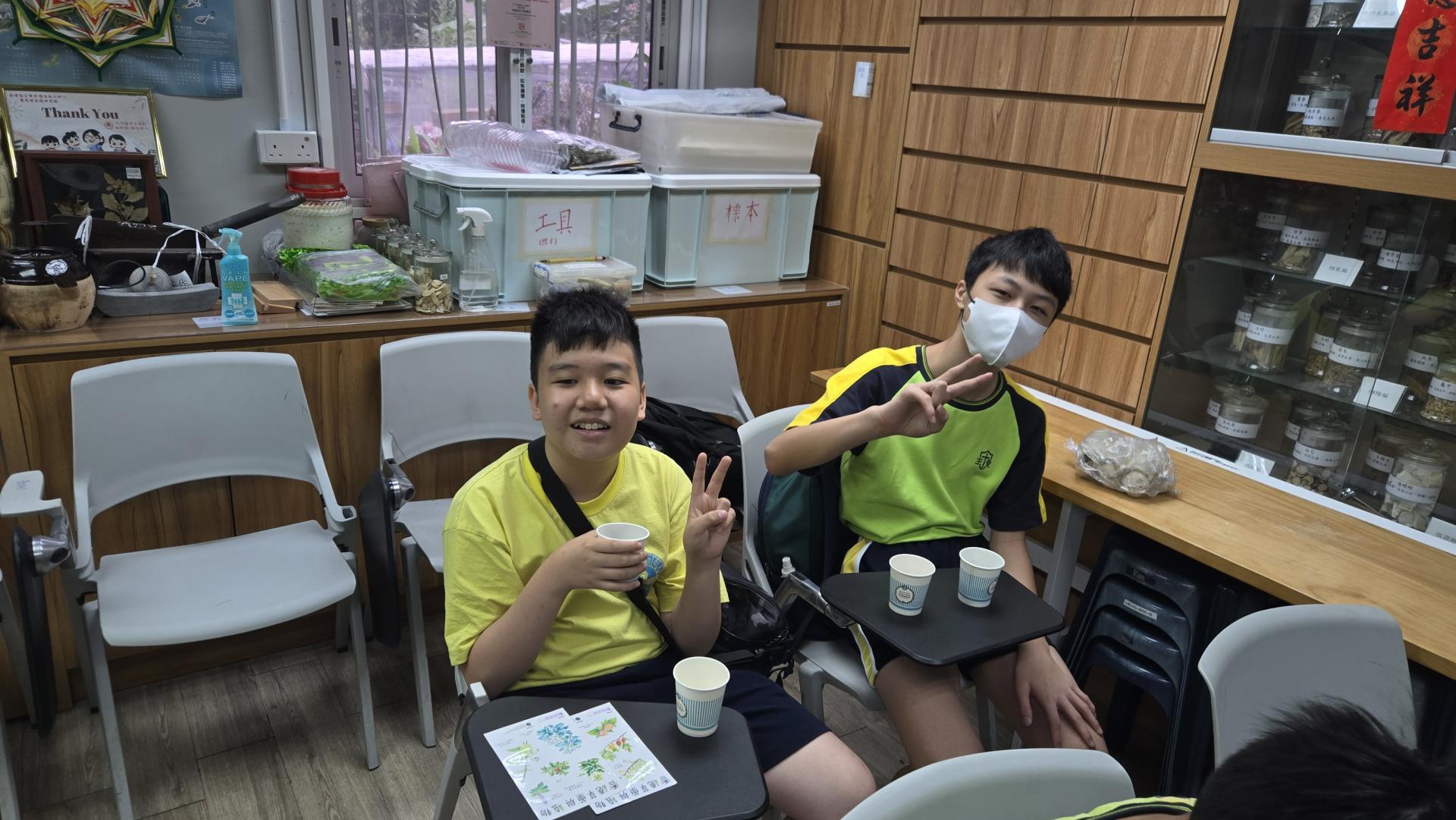 在導師的引領下,同學們化身小偵探,穿梭於中藥植物之間。透過觀察外表、觸摸質地、主動發問,實地領略植物的奇妙特性。最令大家驚喜的,莫過於品嚐由中藥園職員親手熬製的五花茶與桑椹茶,甘甜的滋味瞬間讓滿足感溢滿心頭。