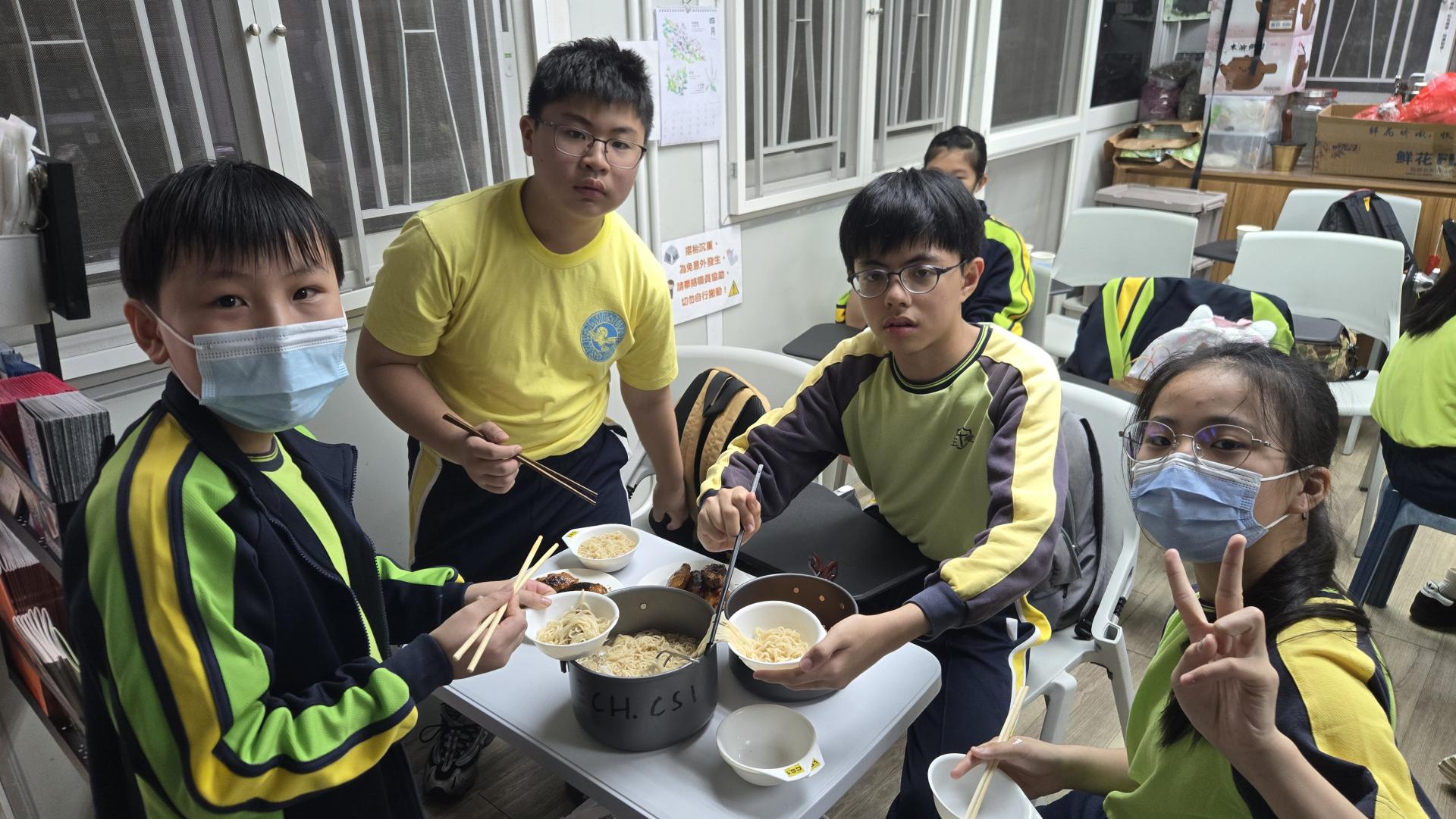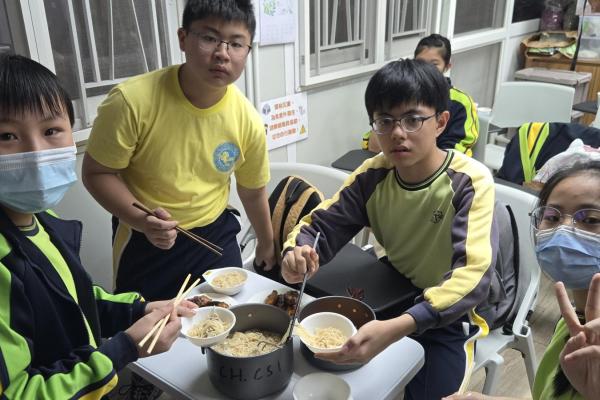 導賞結束後,重頭戲「戶外烹飪」正式登場!同學們分組合作,從構思菜式、準備食材到掌勺下廚,每個環節都充滿了挑戰。在鍋鏟碰撞聲中,大家不僅鍛鍊了合作精神與應變能力,更在汗水中體會到家人每日準備三餐的辛勞,深深感悟到那份被照顧的幸福滋味。