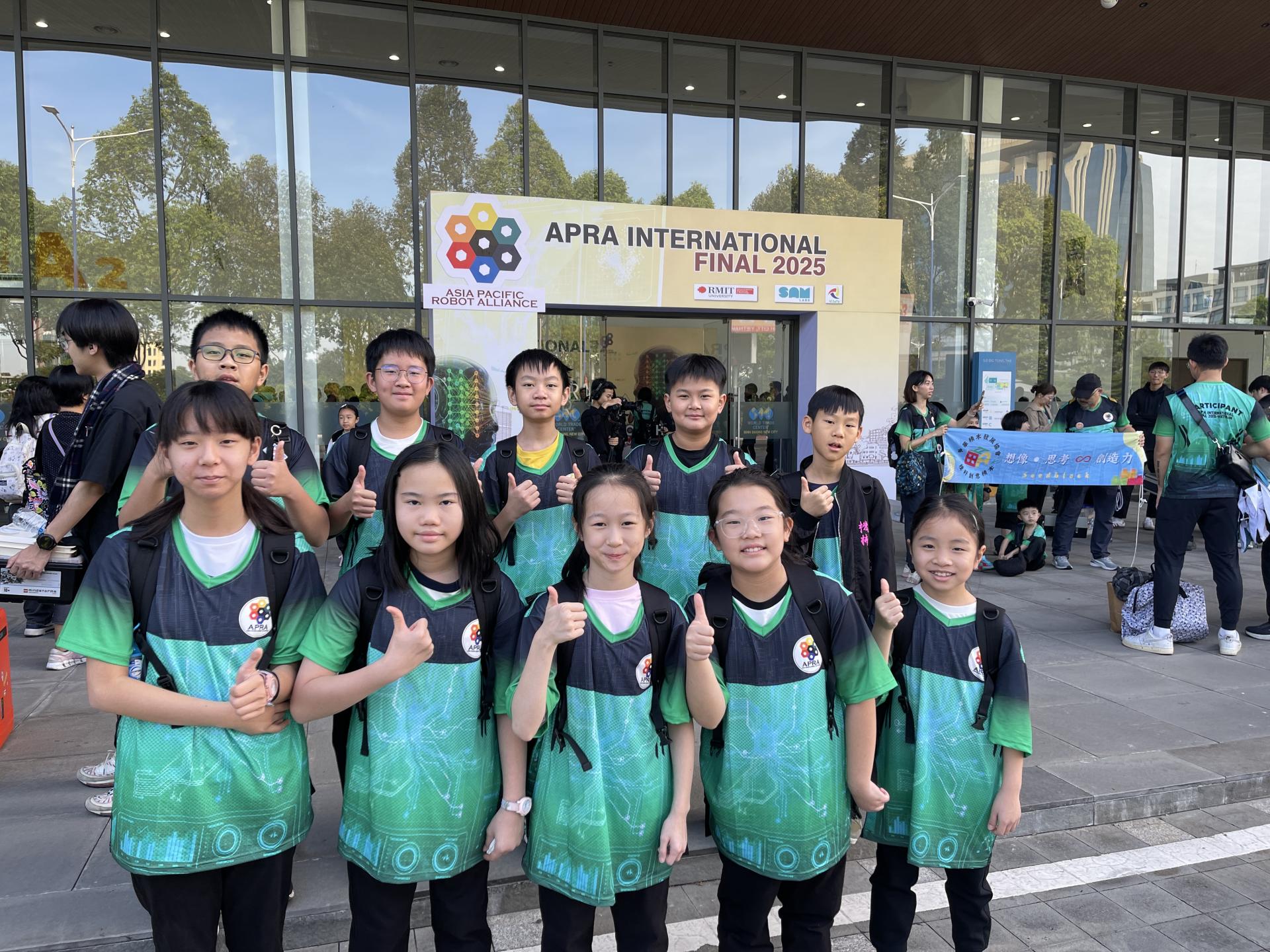 十位梨主機械人校隊隊員於2025年11月27日出發到越南參加2025 APRA 越南胡志明市國際錦標賽,競逐接力任務賽、遙控相撲賽及遙控足球賽多個項目。透過參與國際賽事,隊員不僅能近距離觀摩其他地區隊伍的機械設計及編程技術,還能開闊視野,體會世界之廣闊。在出發前,他們經歷了多次培訓,並對機械人進行反覆測試、改良、分拆及重組,力求盡善盡美。
