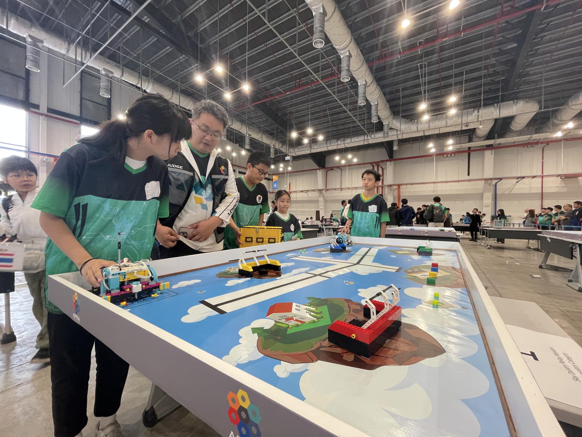 最終,由6B郭頌暘、6C江潤芝及5B張靜恩組成的隊伍在接力任務賽的最後一輪比賽中,以39秒完成所有任務並獲得滿分,勇奪冠軍!由畢業生曾濼峻及蔡嘉榮組成的隊伍緊隨其後,以42秒同樣獲得滿分,摘下亞軍。此外,6A伍樂鈞、5C孫皜、4A林婧、5A顏妤真及4A林甄悦亦在遙控相撲賽及遙控足球賽中表現出色,榮獲優異獎。感謝校方的鼎力支持、家長的積極配合及學生的辛勤付出,讓本次國際賽事圓滿落幕。期望梨主學生未來能再度踏上國際舞台,續寫科創輝煌。