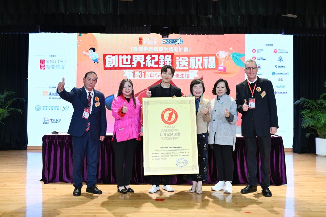 2026-01-31 恭喜5C黃伊霆及6A梁駿謙同學獲選成為星島新聞集團《我要讚佢》「最值得表揚學生獎勵計劃」(25 / 26年度)最值得表揚學生得主。他們除了得到社會的肯定外,亦被邀請於31/1/2026(星期六)參加由星島新聞集團舉辦的旗艦活動,主題為「以心傳善 筆墨生福 共創世界紀錄」,與教育局局長蔡若蓮女士、民政及青年事務局局長麥美娟女士及文化體育及旅遊局局長羅淑佩女士一同書寫「福」字,創世界記錄之餘,亦將「福氣」傳送開去。 梨主照相簿