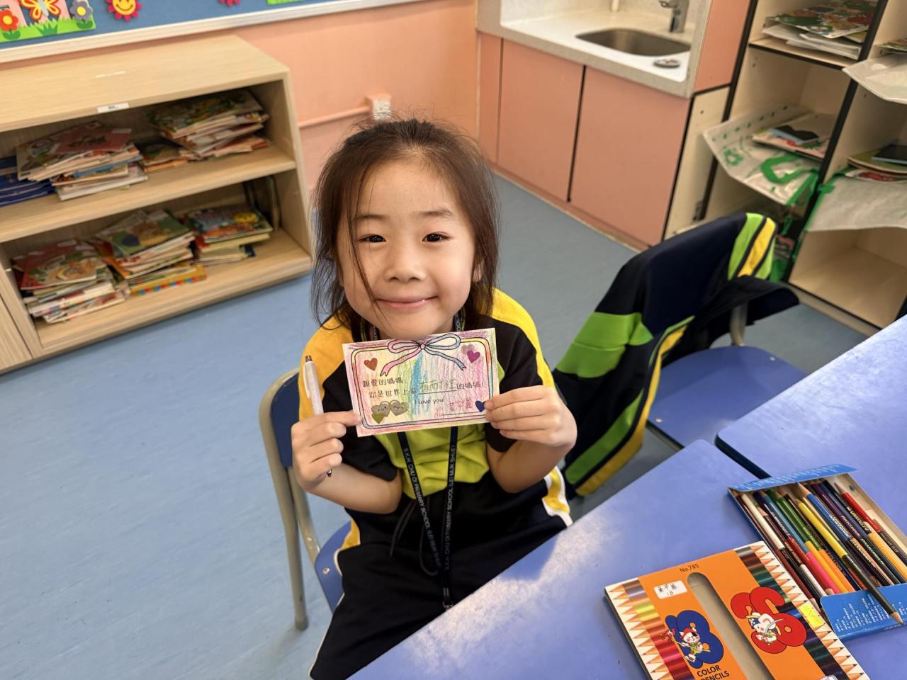 在「故事爸媽」多元智能課中,家長們化身故事中的角色,為孩子們講故事。活動後,學生更分享自己眼中的媽媽,再親手製作小卡片為辛勞的媽媽送上驚喜!