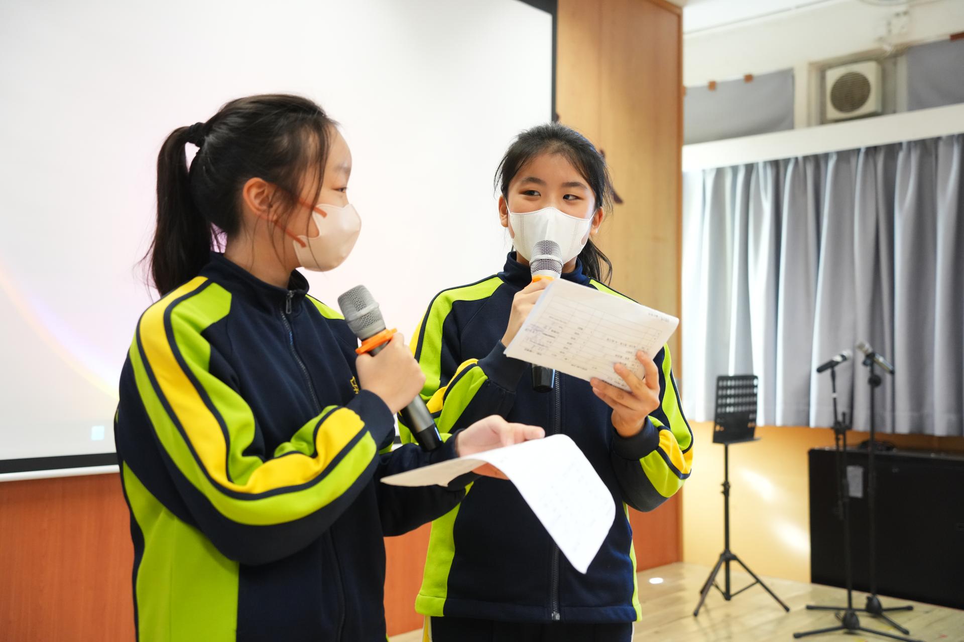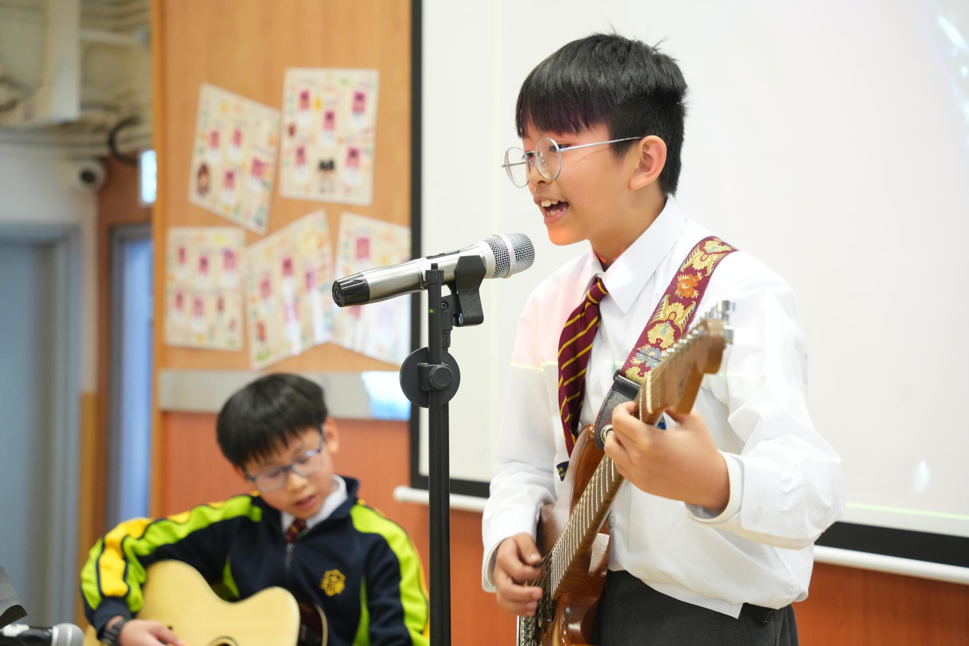 「學校是學生的舞台 ! 」 五、六年級學生在今次的佳角表演精彩非常!學生表演的項目包括演唱韓文歌、自彈自唱懷舊金曲、講故事及跳舞,學生的活力帶動了全場,現場氣氛熱烈!