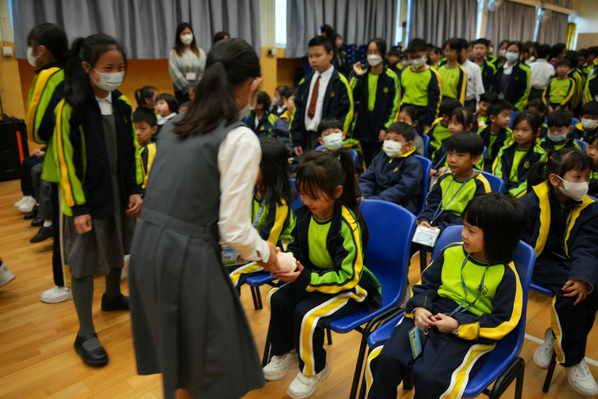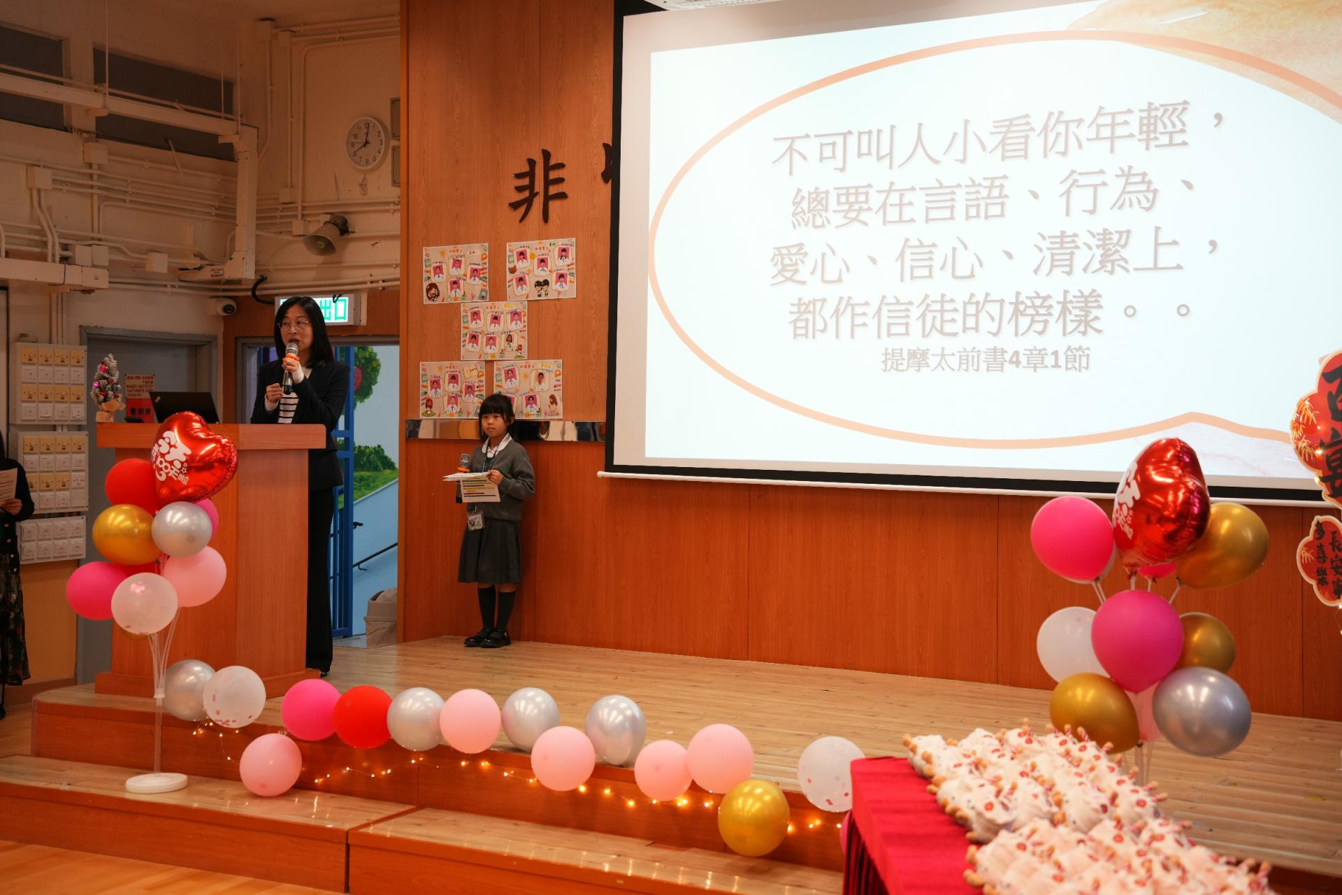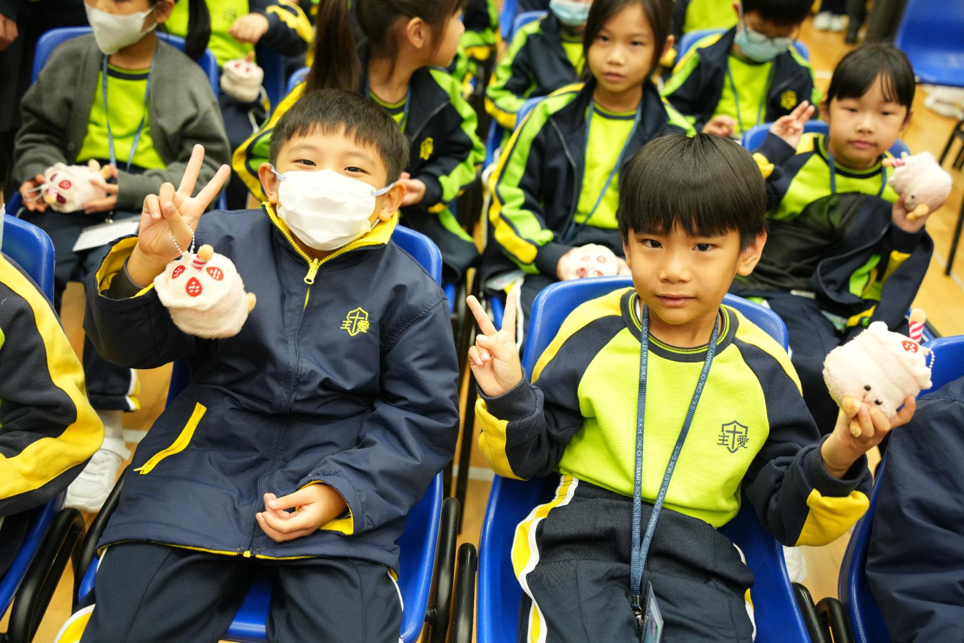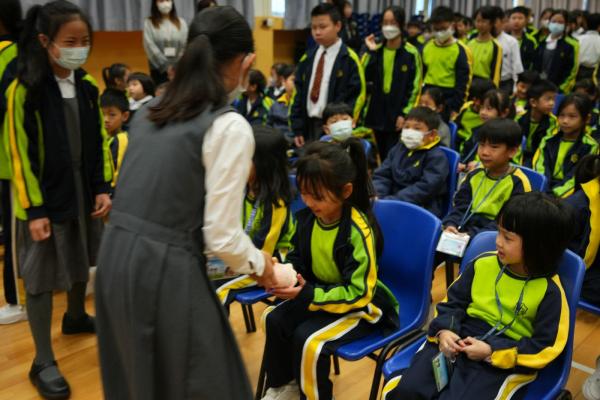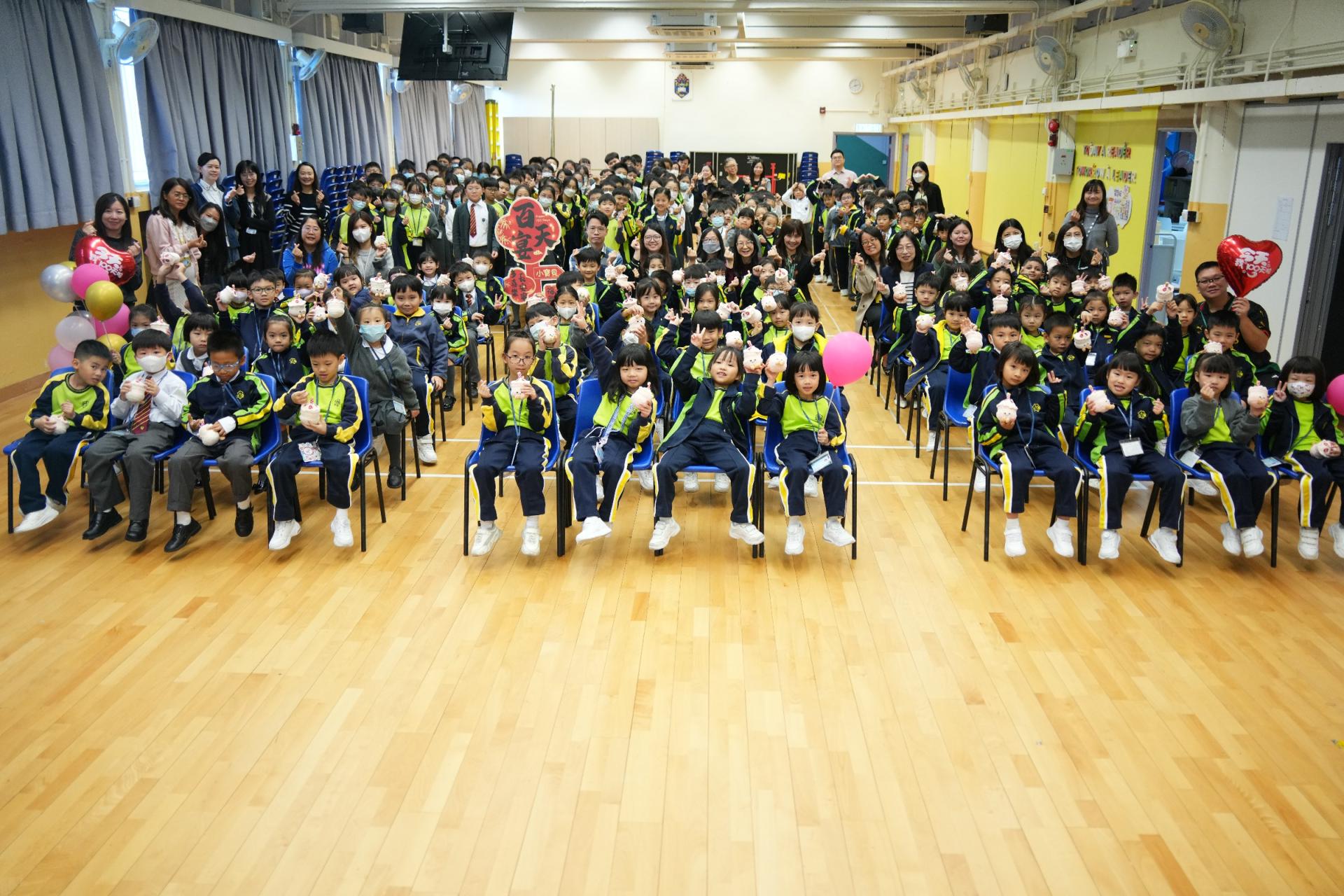 學校為一年級同學們辦了一場超熱鬧的小一百日宴🎉,慶祝他們加入校園三個多月的奇妙旅程🌟!首先,大螢幕播放他們在校的生活片段:上課情況✏️、歷奇活動🏃♂️、現場笑聲不斷👏!緊接著,全場為一年級同學高唱生日歌!並由六年級大哥哥、大姐姐為他們送上軟綿綿的蛋糕公仔🎂,每位同學接過禮物後,臉上充滿甜蜜笑容😊!這場派對不只甜,還充滿了溫暖回憶!✨
