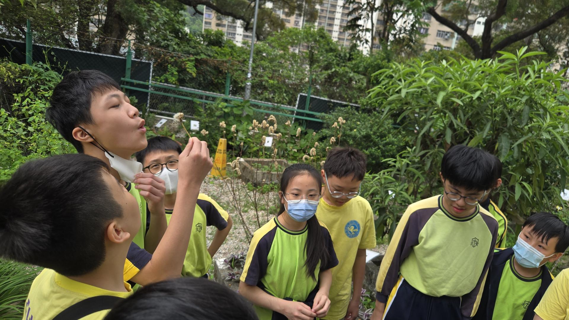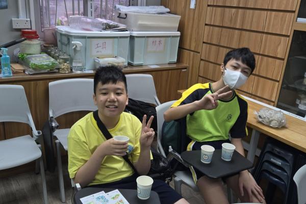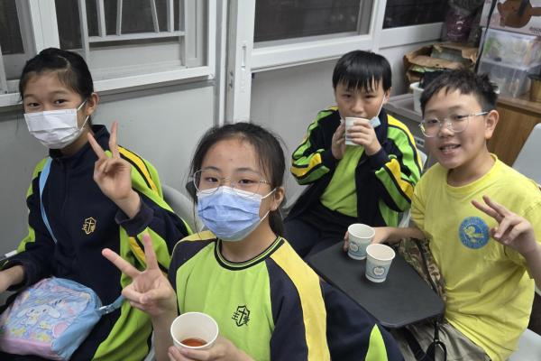 在導師的引領下,同學們化身小偵探,穿梭於中藥植物之間。透過觀察外表、觸摸質地、主動發問,實地領略植物的奇妙特性。最令大家驚喜的,莫過於品嚐由中藥園職員親手熬製的五花茶與桑椹茶,甘甜的滋味瞬間讓滿足感溢滿心頭。
