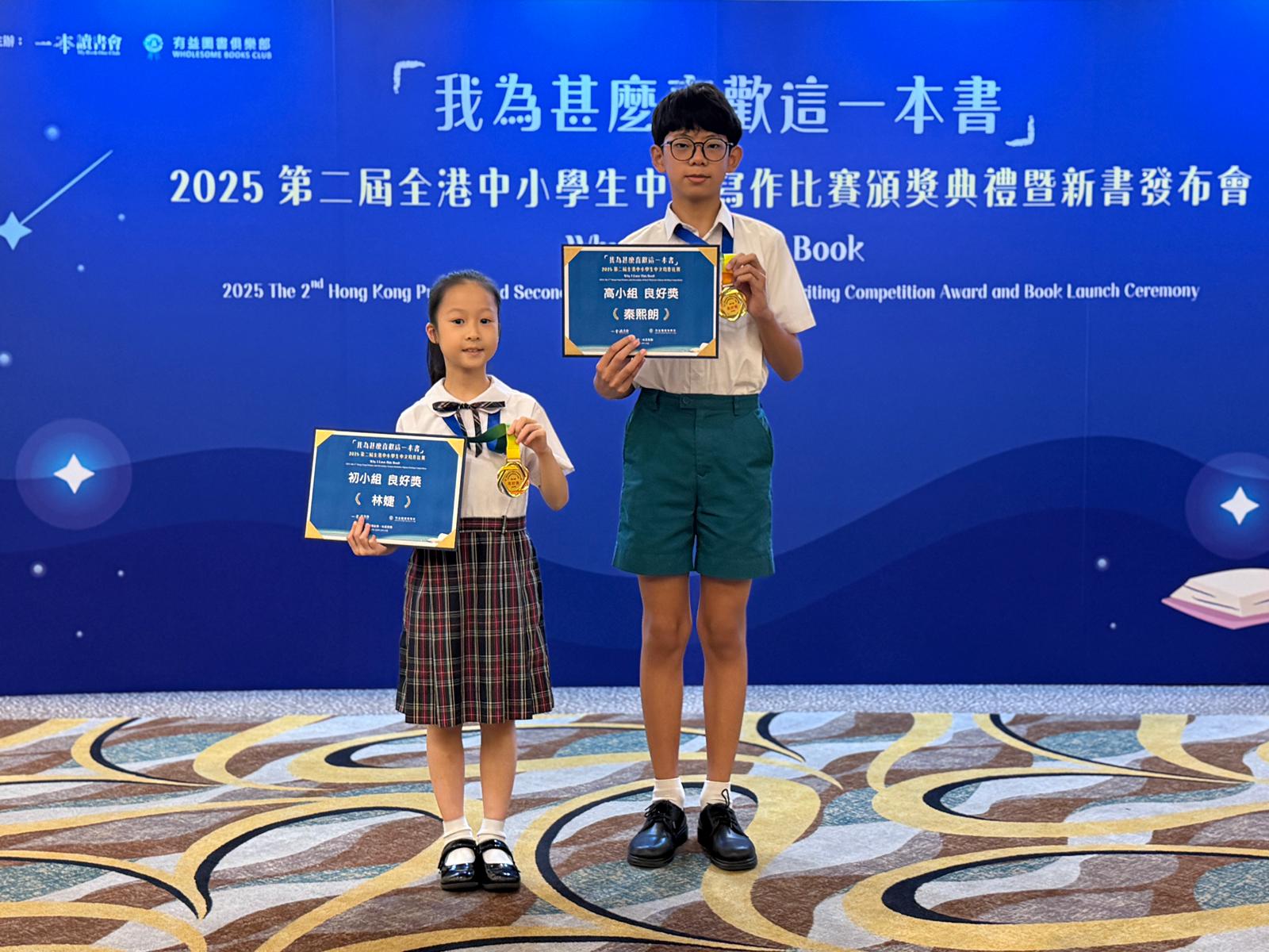 1B班林婕同學与6A班秦熙朗同學在2025年第二屆全港中小學生「我為甚麼喜歡這一本書」中文寫作比賽中榮獲良好獎!